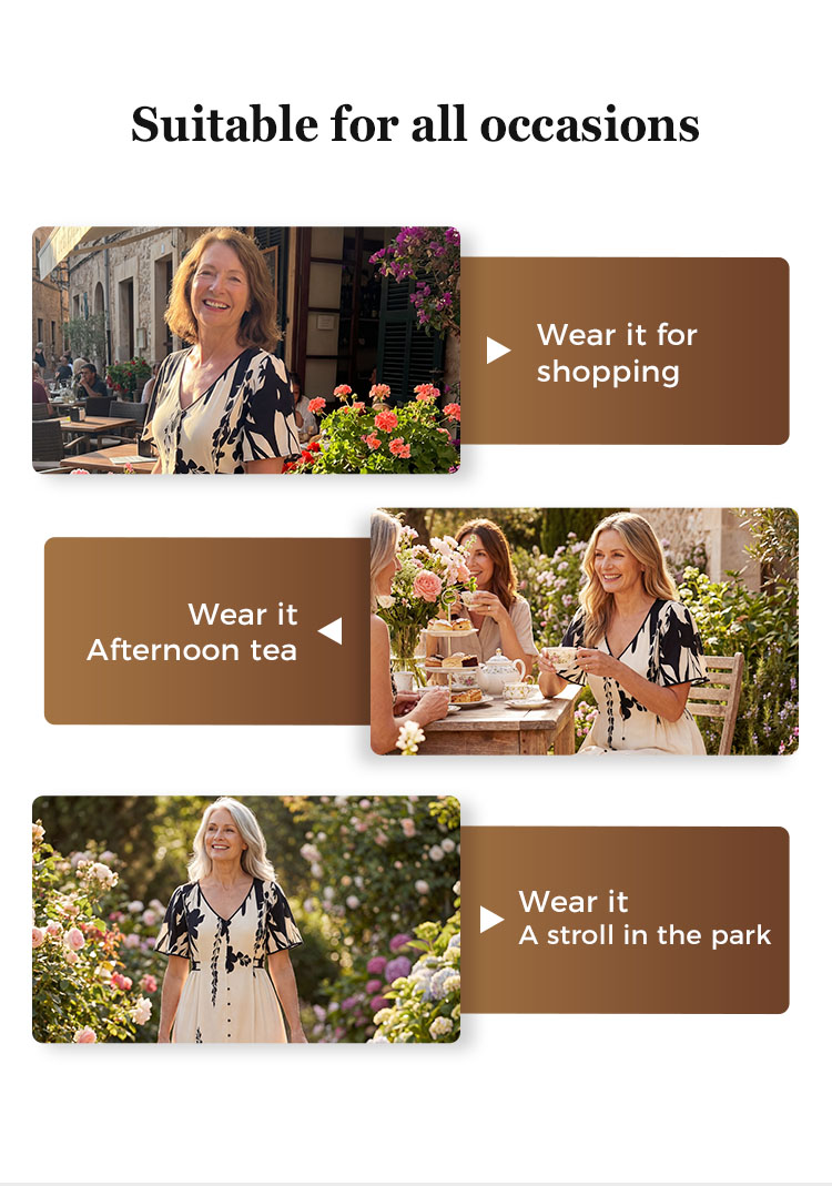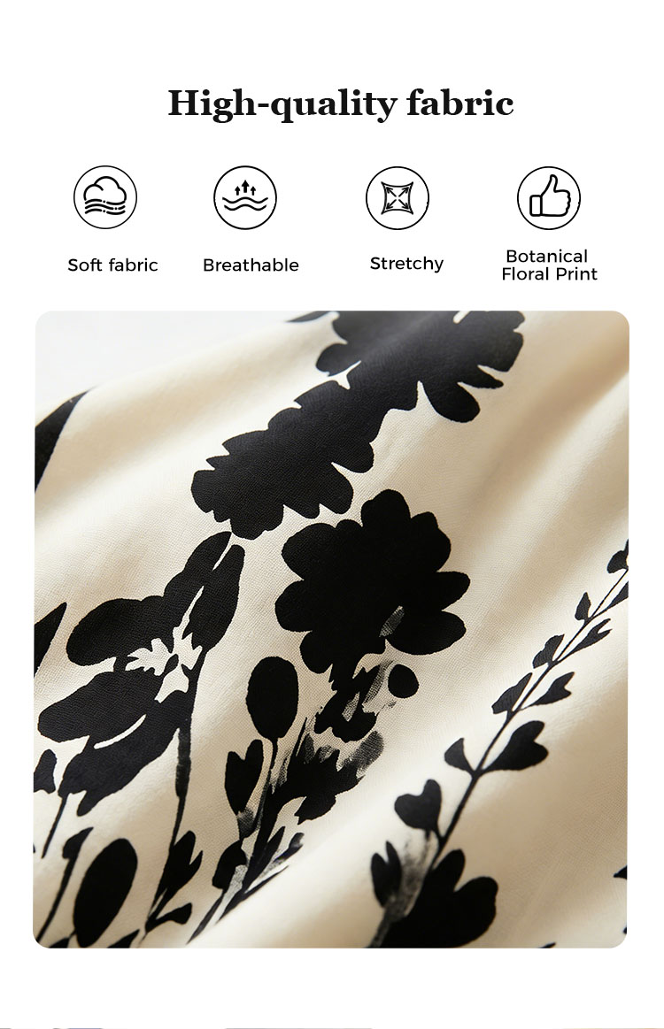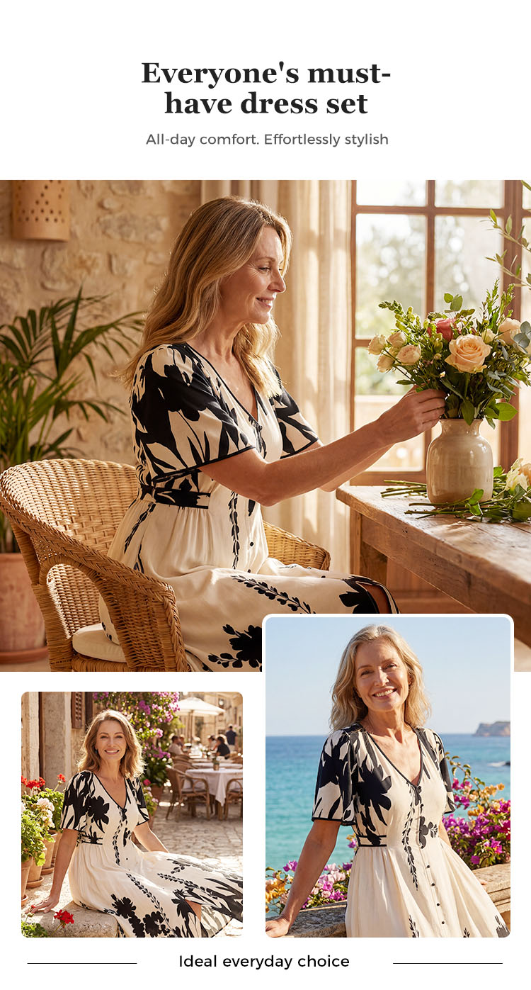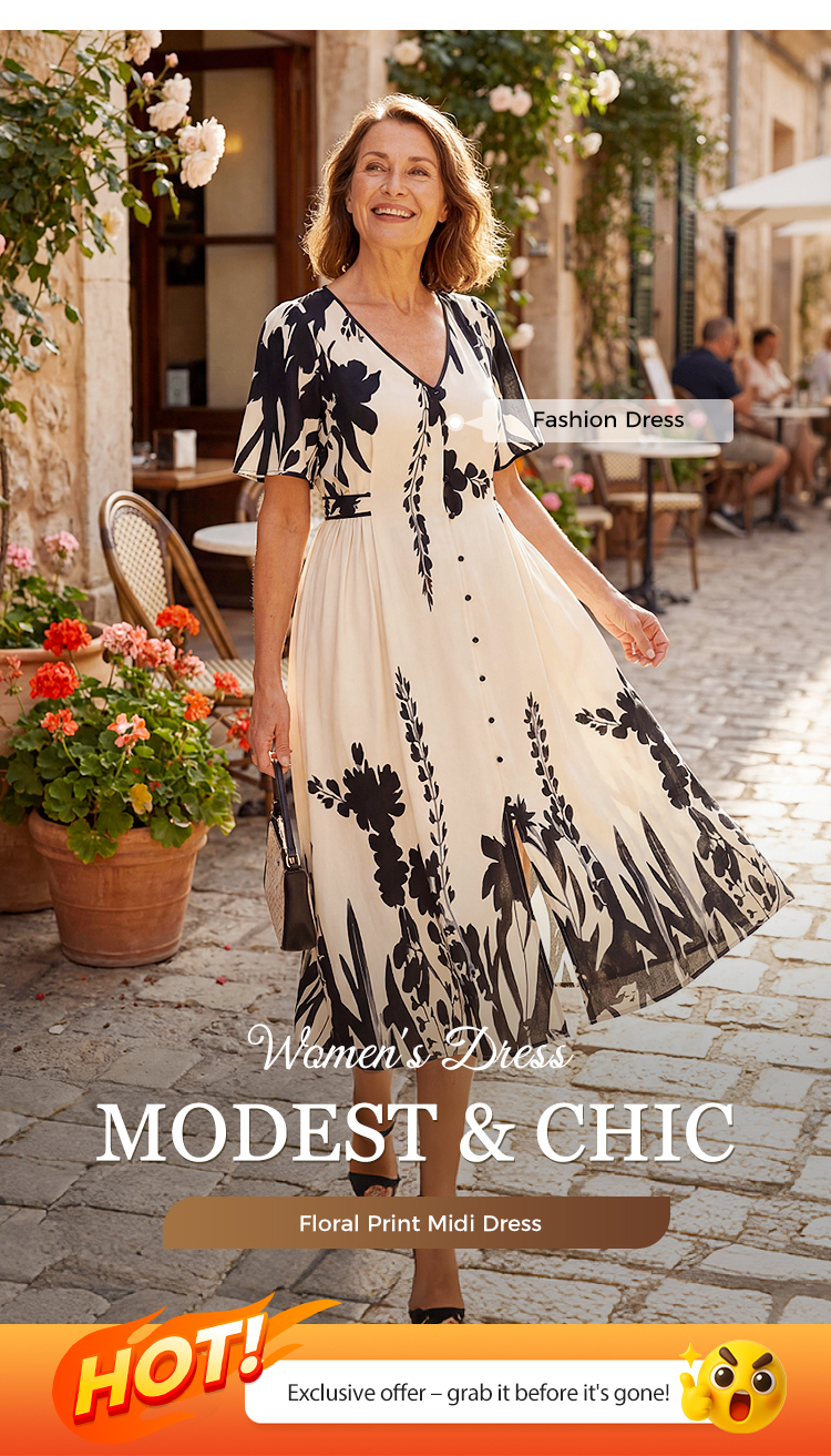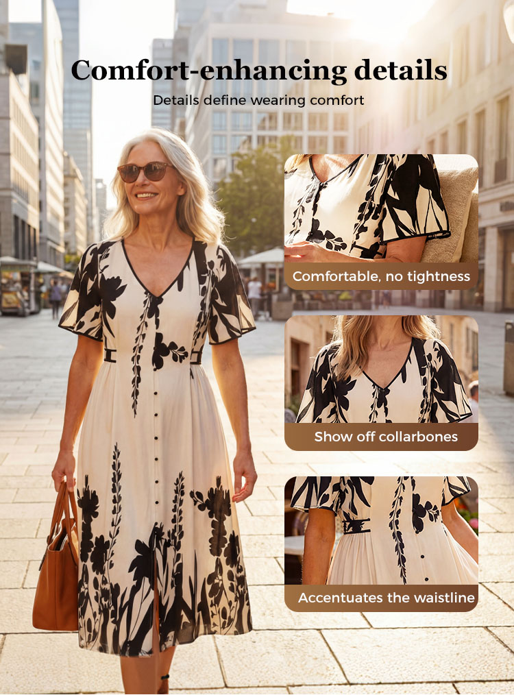💥Soft Botanical Print V-Neck Midi Dress – Elegant, Lightweight & All-Match