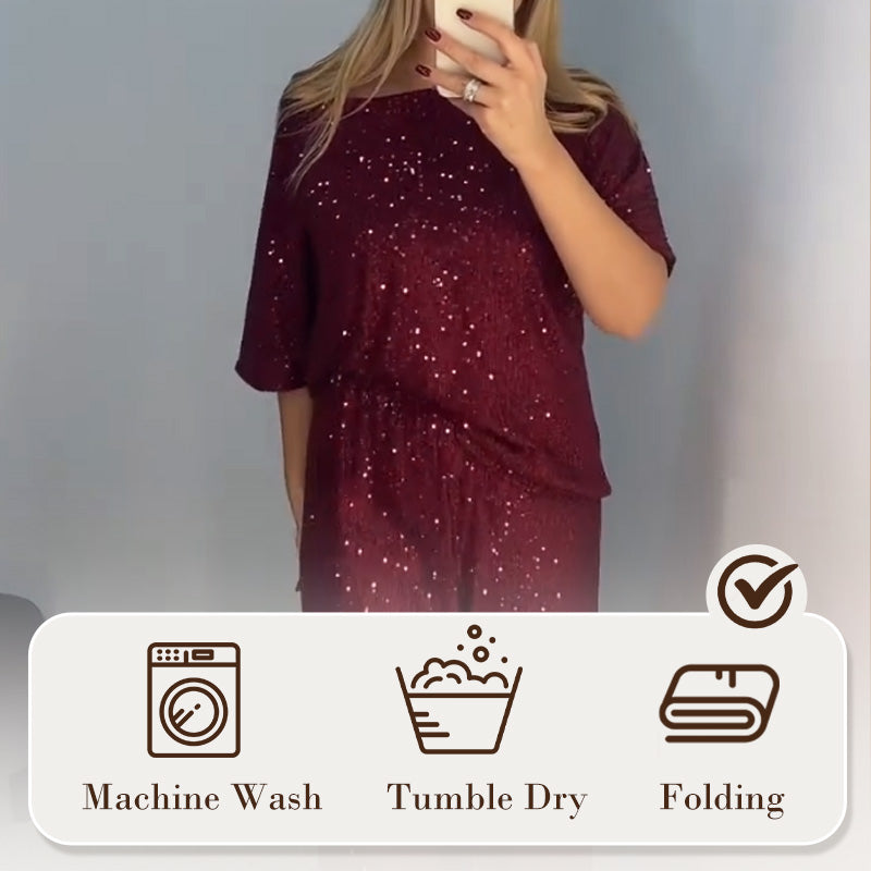 🔥New Hot Selling❤️🔥Women's Sequin Crewneck Top & Loose Trousers💥