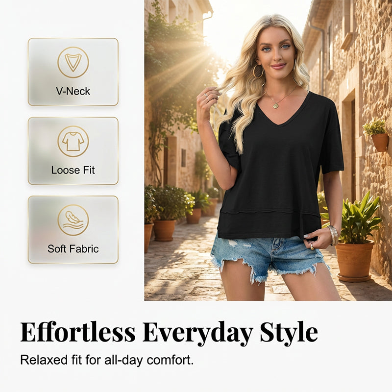 ELEGANT V-NECK DESIGN - The carefully crafted V-neckline flatters your collarbone and adds a touch of feminine elegance to your casual everyday look.
